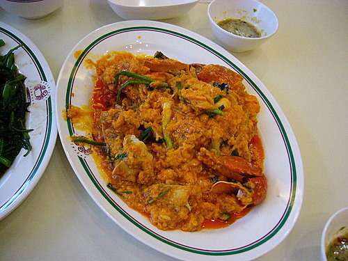 建興酒家的咖哩螃蟹絕對是去曼谷的最愛~紅黃咖哩為底 蛋花椰奶襯中 蔥段為蓋~色香味俱全~下酒配飯兩相宜~連日本首相小田純一郎 美國總統克林頓都嚐過這道菜呢~